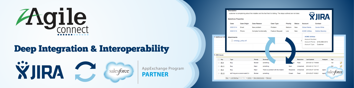 zAgileConnect provides powerful bidirectional integration of information between Salesforce and JIRA. It improves coordination between teams across the two applications so that both sides may efficiently collaborate, exchange information, and track various activities as they work on various customer-centric tasks -- without needing to go back and forth between applications.